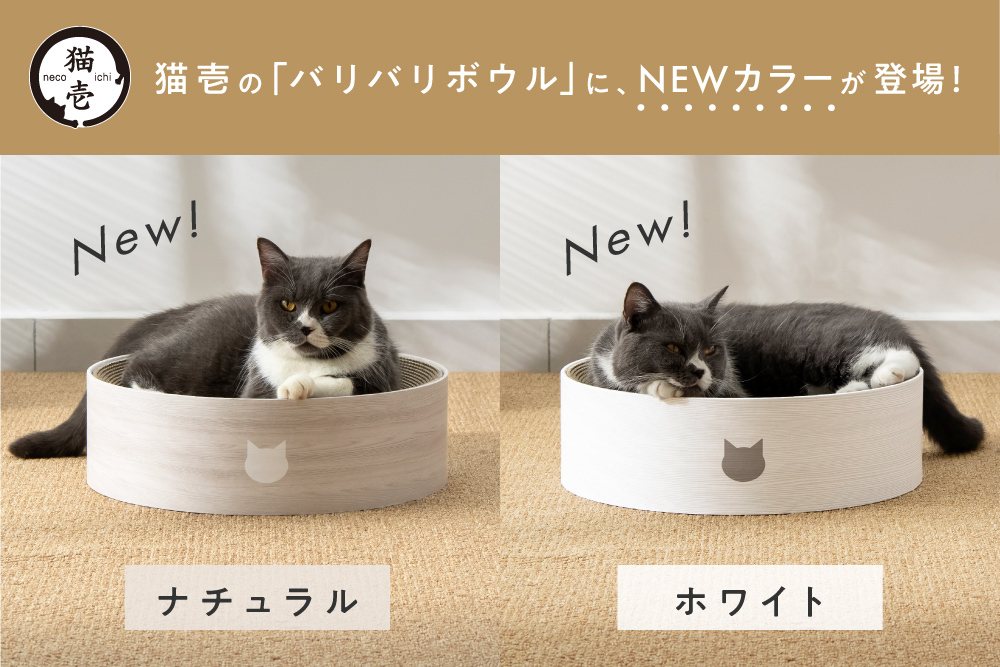 シリーズ累計販売数92万個を突破した大人気つめとぎ「バリバリボウル」の新色「ナチュラル」と「ホワイト」を2025年10月9日より発売いたします。
