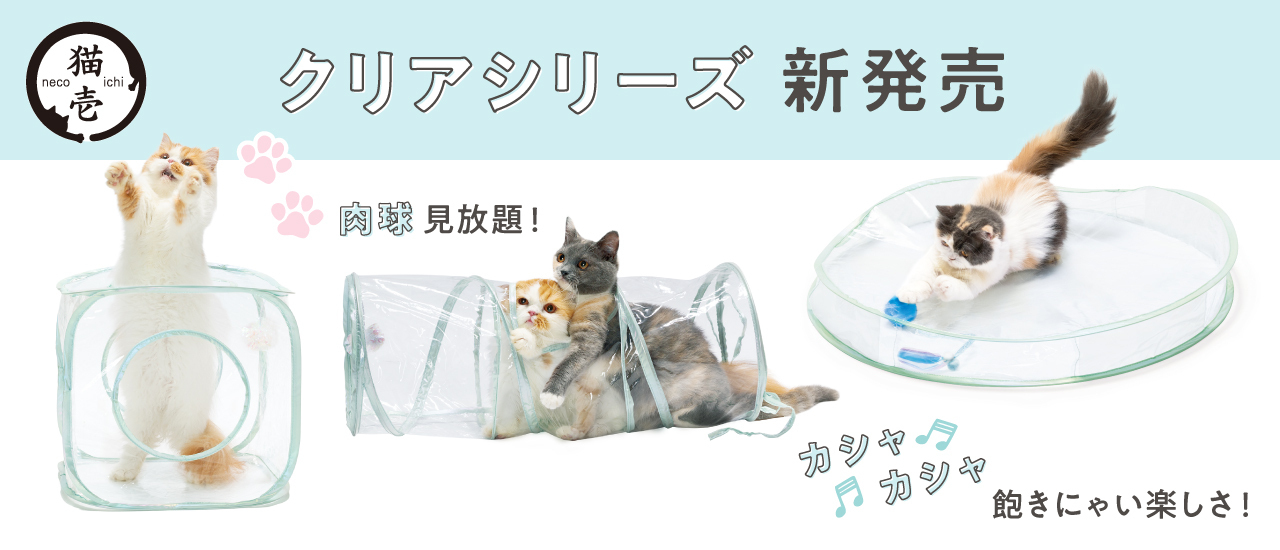 猫と飼い主の双方が楽しめる透明デザインの新シリーズ「クリアシリーズ」より、「キャットプレイキューブクリア」「キャットトンネルクリア」「電動トイセットクリア」の3商品を、2025年11月4日に発売いたします。