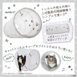 今までのカラーバリエーションは、ピンク、ブルー、木目柄の3種類でしたが、“ホワイト柄も発売してほしい”というお客様の声からキャットトンネル ホワイトは生まれました。