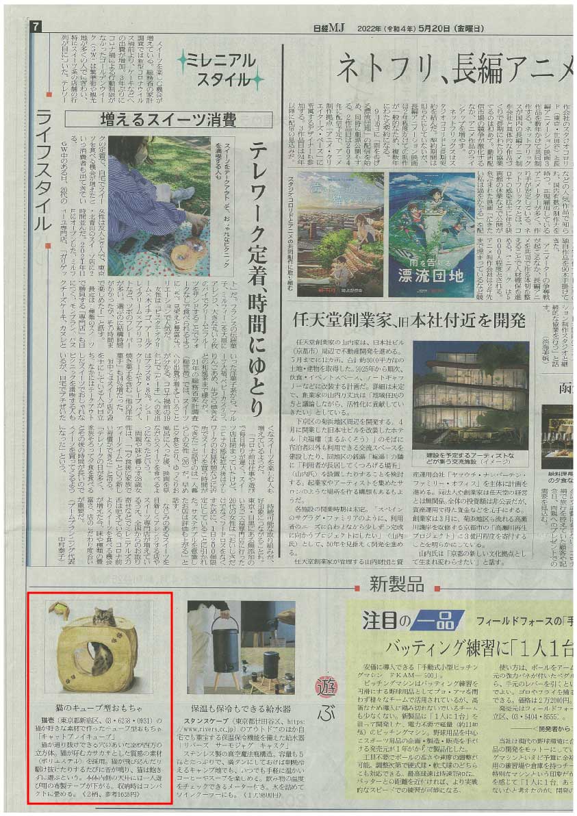 5月20日の日経MJ 新製品コーナーにて、キャットプレイキューブが紹介されました!